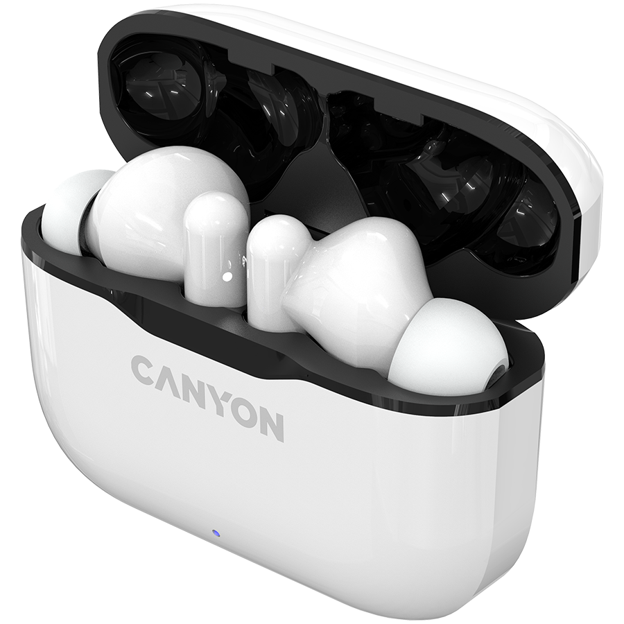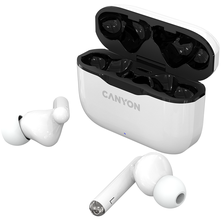 Canyon TWS-3 Bluetooth headset, with microphone, BT V5.0, Bluetrum AB5376A2, battery EarBud 40mAh*2 Charging Case 300mAh, cable length 0.3m, 62*22*46mm, 0.046kg, White
