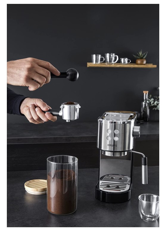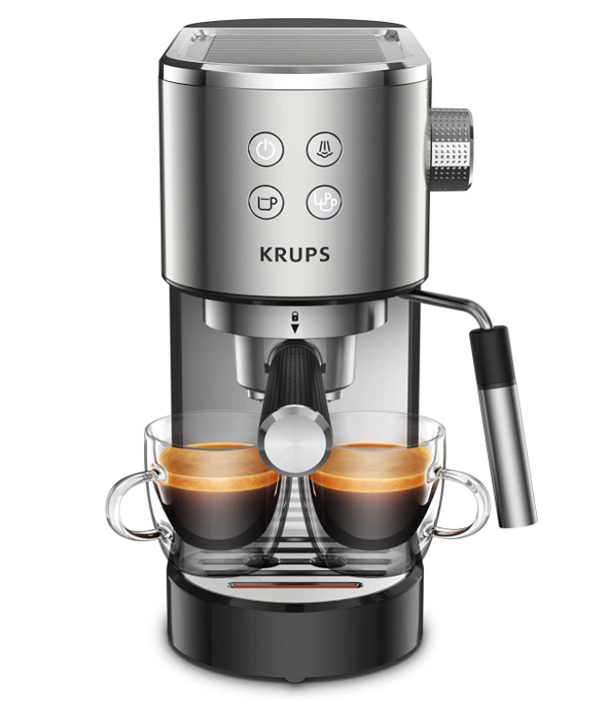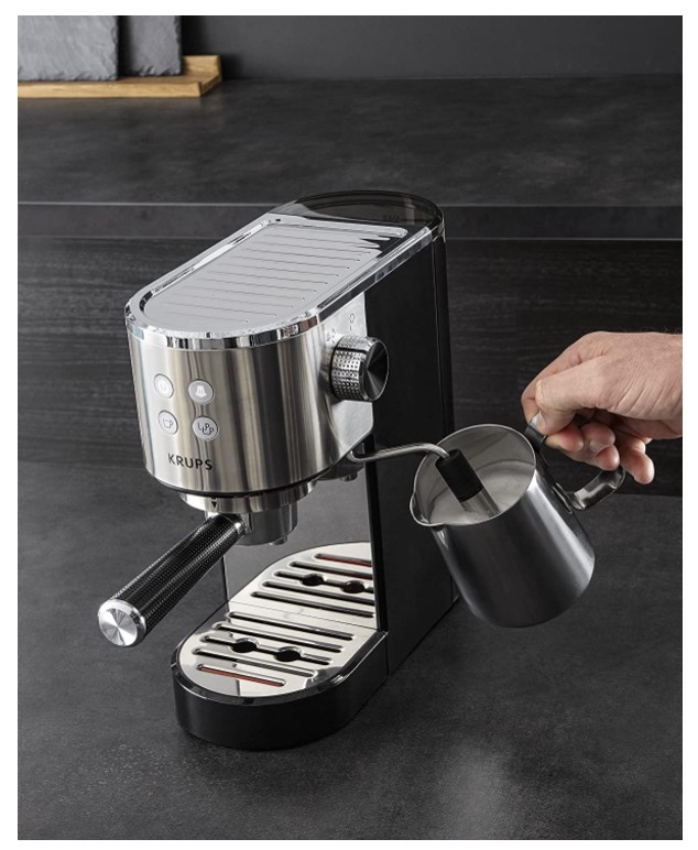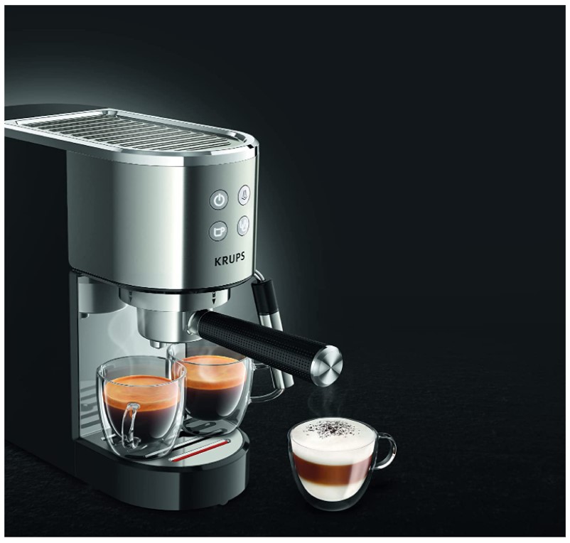 Krups XP442C11 Virtuoso Steam & Pump Espresso aparat, intuitivna automatska upravljačka ploča, Pritisak 15 bara pumpe za poboljšanu ekstrakciju okusa bez gorčine.Mlaznica za paru proizvodi capuccino pripremljen do savršenstva.