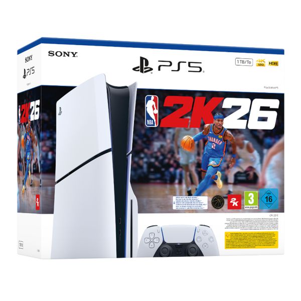 Slim Design, With PS5, gamers get powerful gaming technology in an elegant and compact console design, CPUx86-64-AMD Ryzen Zen 8 Cores / 16 Threads at 3.5GHz (variable frequency), GPU Ray Tracing Acceleration, Up to 2.23 GHz (10.3 TFLOPS), GPU Architecture AMD Radeon RDNA 2-based graphics engine, Memory/Interface 16GB GDDR6/256-bit, Memory Bandwidth 448GB/s, Internal Storage Custom 825GB SSD IO Throughput 5.5GB/s (Raw), Typical 8-9GB/s (Compressed), NVMe SSD Slot, External Storage USB HDD, Ultra HD Blu-ray (66G/100G) 10xCAV, BD-ROM (25G/50G) 8xCAV, BD-R/RE (25G/50G) 8x CAV DVD 3.2xCLV, Ultra HD Blu-ray, up to 100GB/disc, Tempest 3D AudioTech, HDMI Out port, Support of 4K 120Hz TVs, VRR (specified by HDMI ver 2.1), Dimensions390mm x 104mm x 260mm, Weight 4.5kg, Power 350W, Ethernet (10BASE-T, 100BASE-TX, 1000BASE-T), IEEE 802.11 a/b/g/n/ac/ax, Bluetooth 5.1 + NBA 2K26 VCH