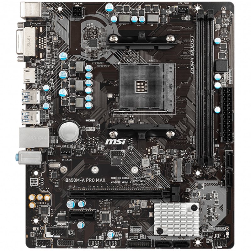 MSI Main Board Desktop B450M-A PRO MAX (SAM4, 2xDDR4, 1xPCI-Ex16, 1xPCI-Ex1,6 x USB3.2, 6 x USB2.0, 4xSATA III, M.2, DVI-D, HDMI, GLAN) mATX Retail