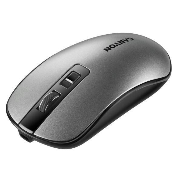 CANYON MW-18, 2.4GHz Wireless Rechargeable Mouse with Pixart sensor, 4keys, Silent switch for right/left keys,Add NTC DPI: 800/1200/1600, Max. usage 50 hours for one time full charged, 300mAh Li-poly battery, Dark grey, cable length 0.6m, 116.4*63.3*32.3mm, 0.075