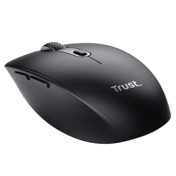 Trust OZAA compact wireless miš, optički senzor, 800-3200 dpi, wireless, USB-A, USB-C, RF 2.4GHz bluetooth, 6 tipki, punjiva baterija, crni
