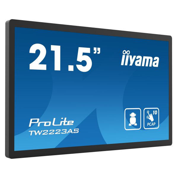 IIYAMA Monitor TW2223AS-B2 21.5” Full HD PCAP 10pt interactive Touch Panel Android VA 1920 x 1080 400 cd/m2 18ms projective capacitive Android 12 with GMS