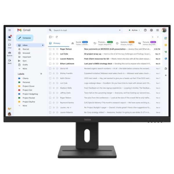 ThinkVision E27-40, 23.8″ IPS, 1920×1080 FHD, 1500:1, 300 nits, 100Hz, 178 / 178, 16:9, 4/6ms, HDMI, DP, VGA, 2x 2w, Tilt, Swivel, Pivot, Height Adjust Stand, VESA, Raven Black, 3Yr