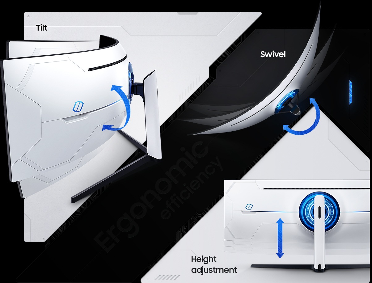 Find your winning position. Swivel, tilt and adjust the height until you're set up for victory. Fully compatible with VESA-standard monitor arms, the screen can be moved effortlessly to your ideal position. Multiple ports are easy to access, and hook up to your favourite devices with no mess.