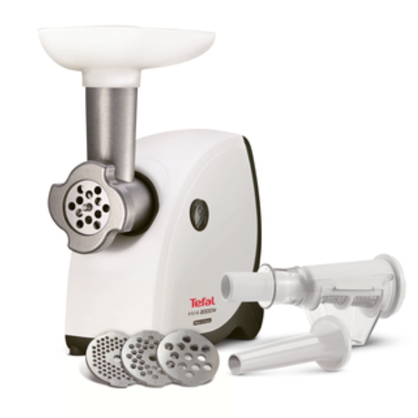 TEFAL rješenje za mljevenje mesa i pripremu sokova NE445138 – Snaga: 2000 W; Do 2,3kg samljevenog mesa u minuti; Prečnik rešetki: 54 mm; Debljina rešetki: 3 mm; Dodatak za kobasice; Dodatak za pire; Može da se pere u mašini za posuđe