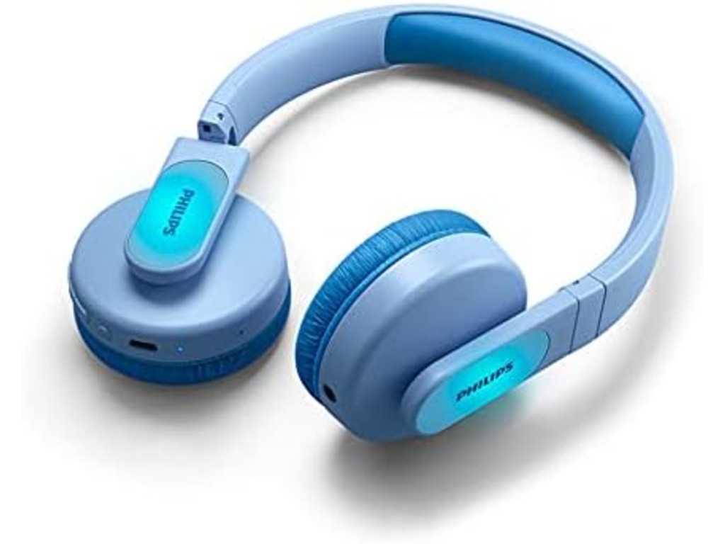Philips TAK4206BL djecije slušalice – bluetooth; 28 sati reprodukcije; roditeljski nadzor; ivopisne svjetleće ploče na školjkama za uši; priključnica od 3,5 mm; mikrofon; domet do 10; boja plava