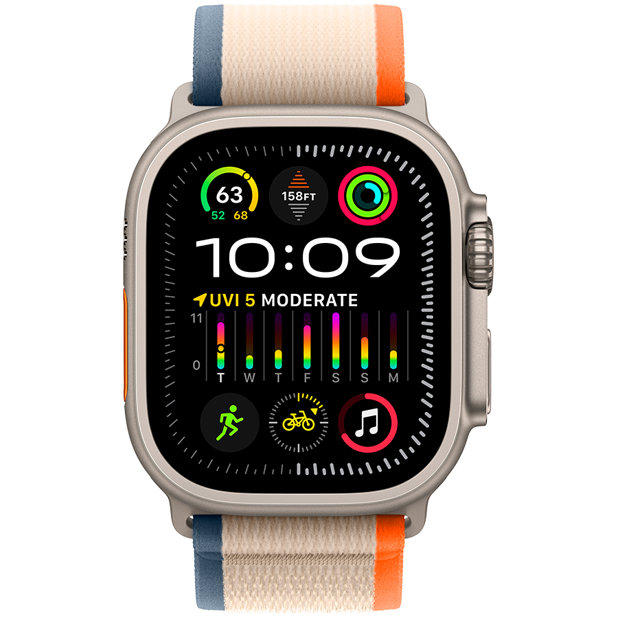 Apple Watch Ultra2 Cellular, 49mm Titanium Case w Orange/Beige Trail Loop – M/L