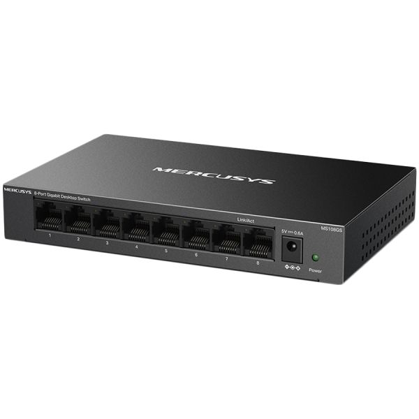 Mercusys MS108GS 8-Port Gigabit Desktop Switch, 8× Gigabit Ports, Desktop Steel Case, Wall Mounting, Plug and Play, Power Saving, Compact design, Green Ethernet technology, Silent