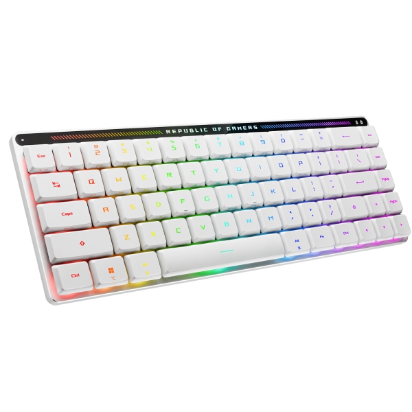 Get ready for combat with the ROG Falchion Ace keyboard. This compact 65% form-factor gaming keyboard boasts an interactive touch panel and innovative two-way cover case, and features pre-lubed ROG NX mechanical switches, ROG stabilizers and durable ROG PBT doubleshot keycaps for smooth and precise keystrokes. Two USB-C® ports on either side of the keyboard allow for a neat and flexible setup, while three keyboard tilt angles ensure comfortable gaming