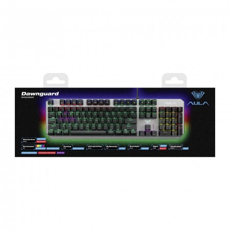 Blue Switch, Wired, Layout Eng, Mechanical, RGB, Keys No: 104, Key actuation force: 60 g., Key actuation distance: 2.0 mm., Key route: 4.0 mm., Key life span: 50 million Anti-ghosting, Rainbow backlight, adjustable effects and intensity, Mechanical switches with noticeable tactile and audible feedback, Long lasting laser etched symbols, USB, 1,6m