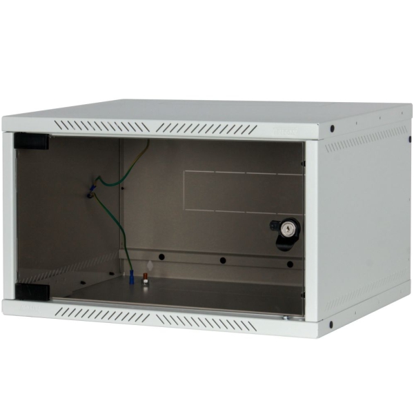 Zidni ormar, Visina 9U, Širina 600 mm, Dubina 400 mm, Vrata staklena, Nosivost ormara 40 kg, Bočne stranice da, Vertikalni nosači prednji, Zaključavanje vrata i bočnih stranica da