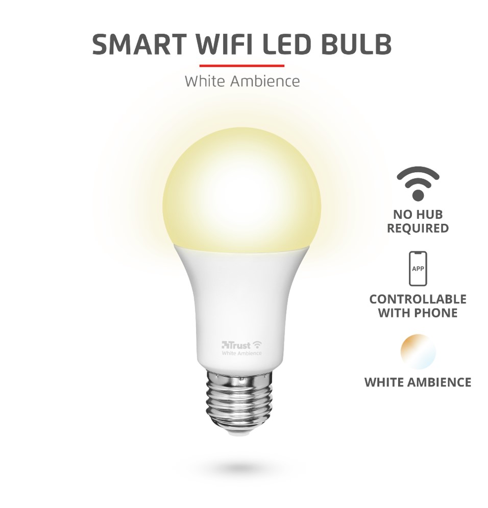 Trust Smart WiFi LED sijalica E27, bijela svjetlost. Kontrola pomoću smart uređaja. Konekcija preko WI-FI (2.4 Ghz), nije potreban hub.Vijek trajanja 15.000 sat