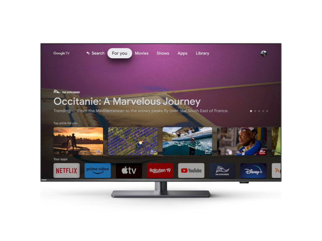Philips 55″PUS8818 4K Google TV; Ambilight s 3 strane; panel 120HZ; P5 procesor; Dolby Vision; HDR10+; Micro Dimming Pro; Natural Motion; Podrka za CalMAN; ; procesor cetverojezgreni; zvuk RMS 40W; 2.1 HDMI; memorija 16GB; Antracit sivi okvir; M 23