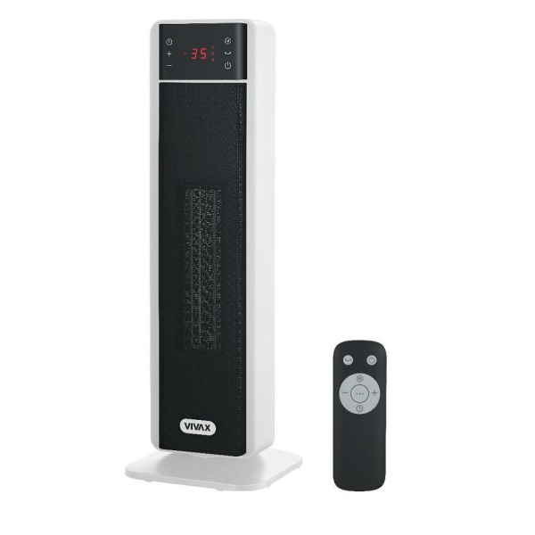 VIVAX HOME keramička grijalica CHT-2000 W zagrijat će Vas u hladne jesenskedane. Jednostavna za korištenje, ova keramička grijalica snage 2000 W sdva stupnja snage, nudi zahtjevnu funkciju – okretanje gornjeg dijela za90° kako bi što bolje zagrijala prostor.
